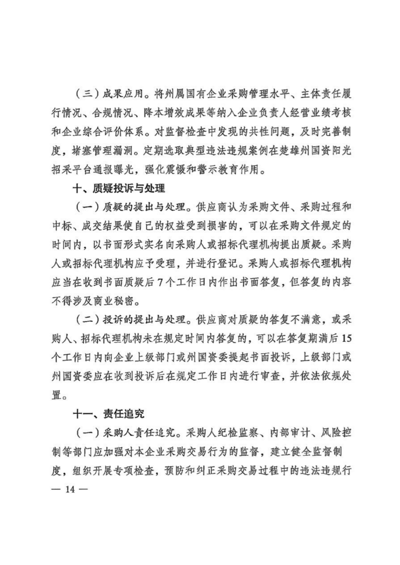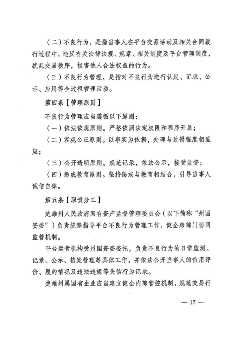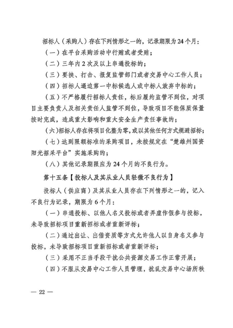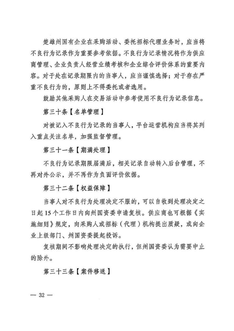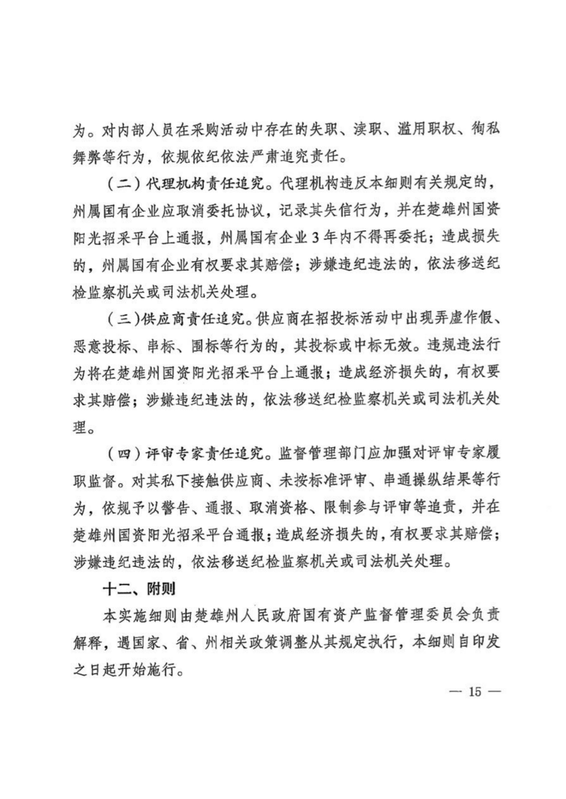 楚国资〔2025〕71号关于印发《楚雄州国资委关于规范州属国有企业采购管理工作实施细则(试行)》《楚雄州国资阳光招采平台当事人不良行为管理规则(试行)》的通知